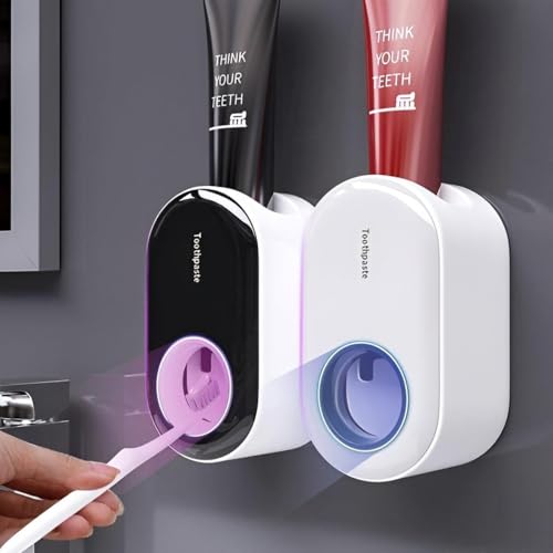 Generic - اداة حمام بدون استخدام اليدين - موزع معجون اسنان اوتوماتيكي يتميز بمواد متينة وتصميم عملي عصري وسهل التركيب والاستخدام الصحي وموثوقية عالية لروتين صباحي منظم بدون مجهود