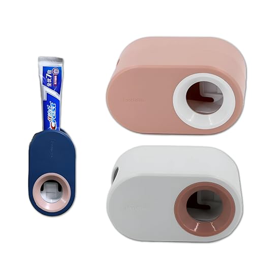 Generic - راحة بدون استخدام اليدين - حامل حائط اوتوماتيكي لمعجون الاسنان لتوزيع معجون الاسنان بدون مجهود بضغطة بسيطة في الحمام (متعدد الالوان) (3 قطع)
