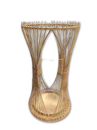 Generic - شمعدان منسوج يدويًا - قاعدة من الراتان مصنوعة يدويًا مع كوب زجاجي قابل للإزالة لحمل شموع الشاي؛ طول 25 سم، ما يوفر نقطة محورية دافئة وجذابة في مساحات المعيشة