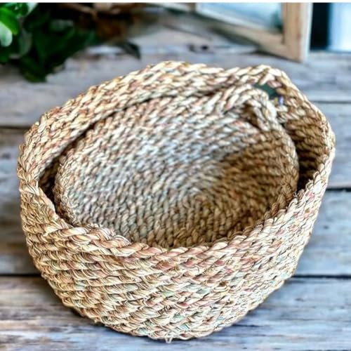 Generic - سلة حالفا منسوجة يدويًا، نمط ريفي طبيعي، 15 × 20 سم و20 × 30 سم، مجموعة من قطعتين
