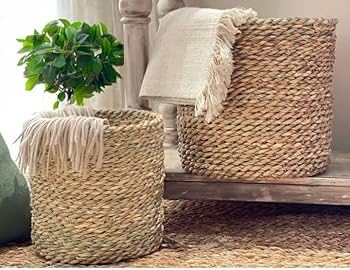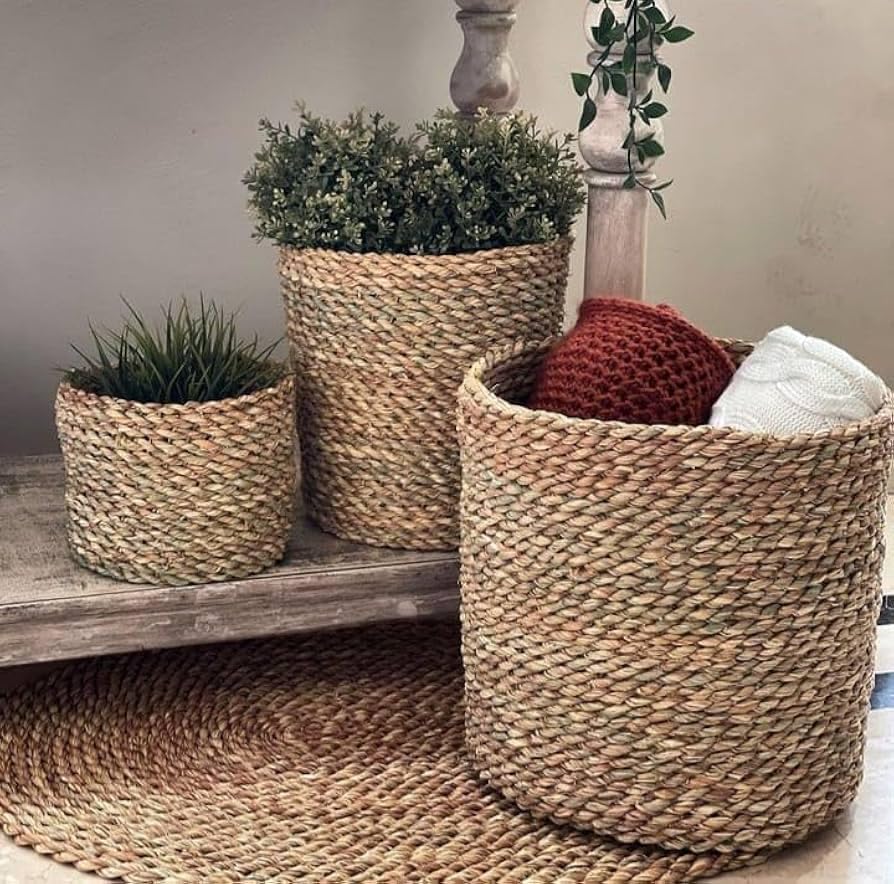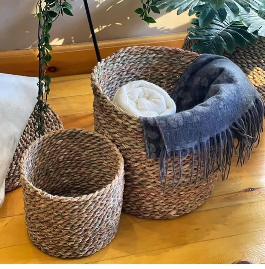 • تصميم منسوج يدويًا: سلة مصنوعة يدويًا من الأعشاب البحرية الطبيعية بتصميم جميل ونمط نسج متقن يضفي لمسة ريفية ساحرة على أي غرفة في المنزل.