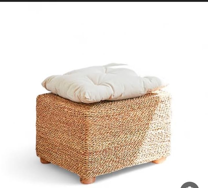 - هيكل منسوج يدويًا: وسادة مربعة منسوجة يدويًا بدقة من عشب النصف الطبيعي، مما يعرض الحرفية التقليدية مع جمالية معاصرة