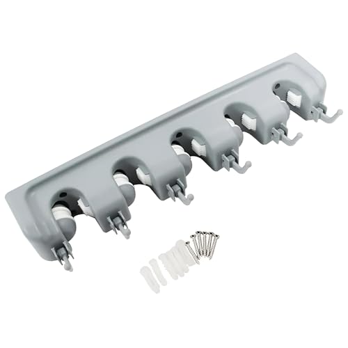 Generic - منظم ممسحة ومكانس عملي مزود بخمسة مواضع للفتحات و6 خطافات لتخزين المرآب، مناسب لحمل ما يصل إلى 11 أداة، مقاس قياسي مثبت على الحائط من أجل تنظيم مريح