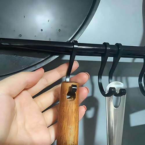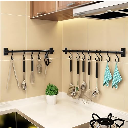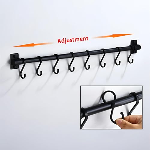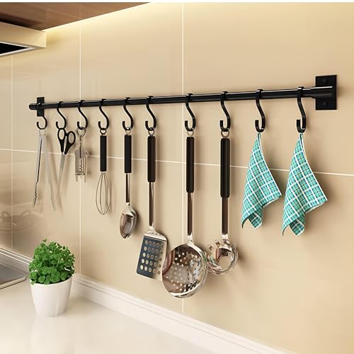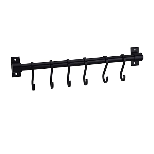 Generic - شماعة بخطافات للمطبخ لأدوات المطبخ وأدوات الشواء والأدوات بشكل عام، قضيب تعليق (لون أسود، مقاس 6 × 60 سم)