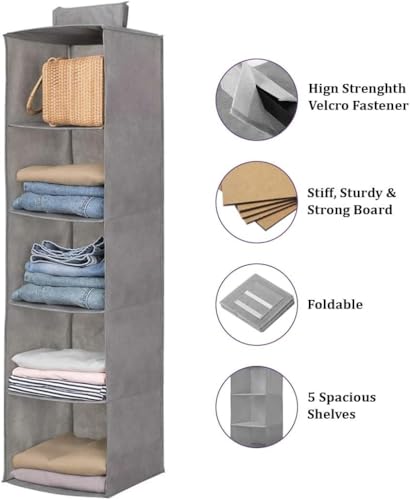 Generic - منظم دولاب معلق بـ5 أرفف قابل للطي مع حزام سهل التثبيت