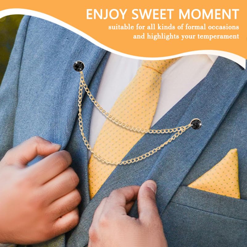 Kilener - دبوس سلسلة ذهبية معلقة للبدلات الرجالية، بروش سلسلة بروش من حجر الراين، دبوس بروش كريستالي للبدلات الرجالية، اكسسوارات قمصان الرجال