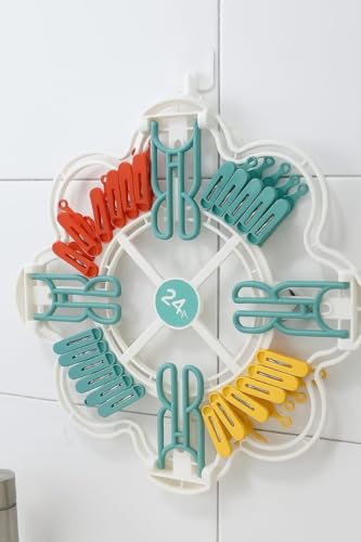 - سعة كبيرة: يتميز المنشر بوجود 24 مشبك بلاستيك لتعليق العديد من القطع الملابس.
