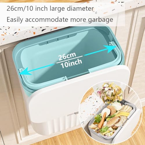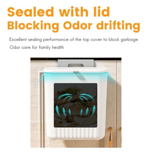 AREXOL - سلة مهملات تعلق على باب خزانة المطبخ بغطاء قلاب سلس ولاصق قوي، تصميم سهل التنظيف، مناسبة للمطابخ المصرية الصغيرة والتخلص السريع من المخلفات اليومية