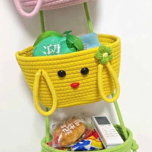 Generic - سلال تخزين معلقة منظمة مزينة بحبال مزخرفة من 3 طبقات، لون وردي وأصفر وأخضر، مع لمسات مزينة بالزهور