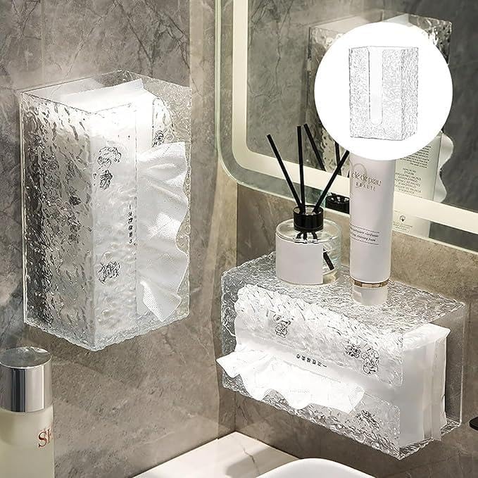 Generic - منظم مناديل ورقية معلق بتصميم اكريليك خفيف يثبت على الحائط بشريط لاصق مزدوج وقوي مناسب للحفاظ على النظافة وسهولة الوصول إلى المناديل في أنحاء المنزل المختلفة