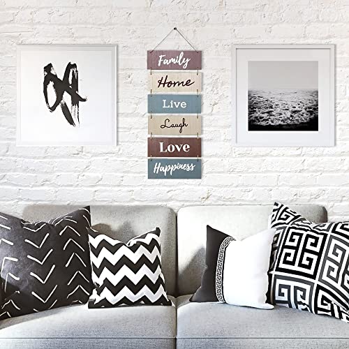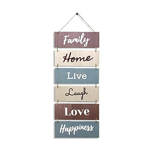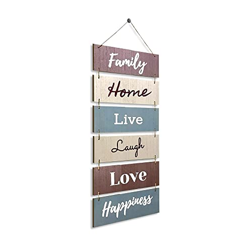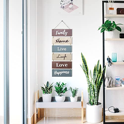 EcoRise - لافتة ديكور حائط معلقة - زينة حائط عمودية للترحيب اكسسوارات منزلية ريفية لغرفة المعيشة وغرفة النوم وغرفة الطعام والمطبخ لافتات خارجية للمنزل بكلمات (Family Home Live Laugh Love Happiness)