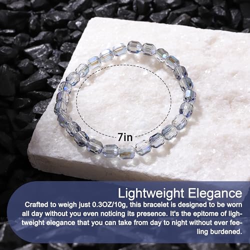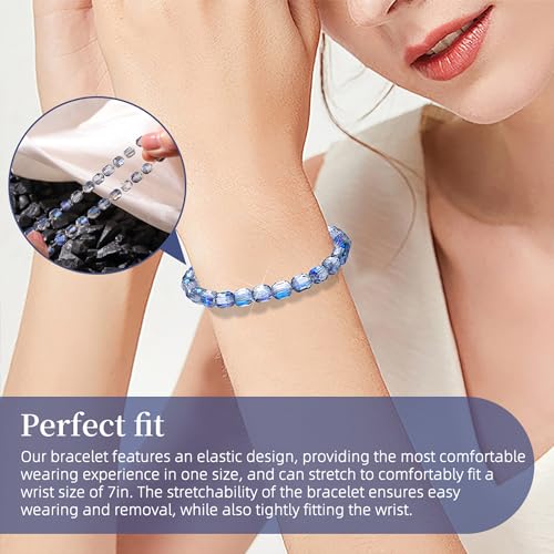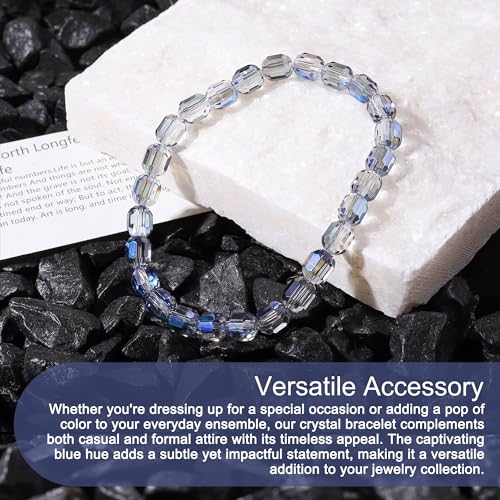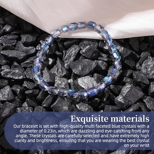 HANGINTHERE - سوار كريستال اورورا ستريتي من هانجينثير- تصميم مرن، 7 انش/18 سم، 0.3 اونصة/10 غرام مع كريستالات زرقاء متعددة الاوجه 6 ملم - يتضمن شنطة مخملية