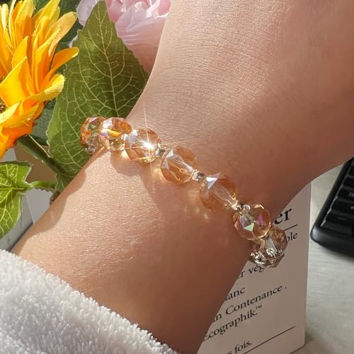 HANGINTHERE - اساور كريستال بتصميم اضواء نورثرن لايت للنساء من هانجينذر، سوار كريستال مرن شفاف انيق وطاقة علاجية لعيد الام وعيد الميلاد والذكرى السنوية هدية مجوهرات للبنات والنساء والام (10 ملم)