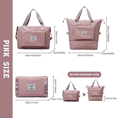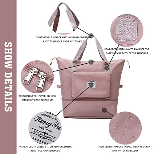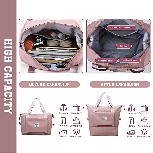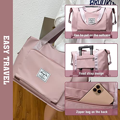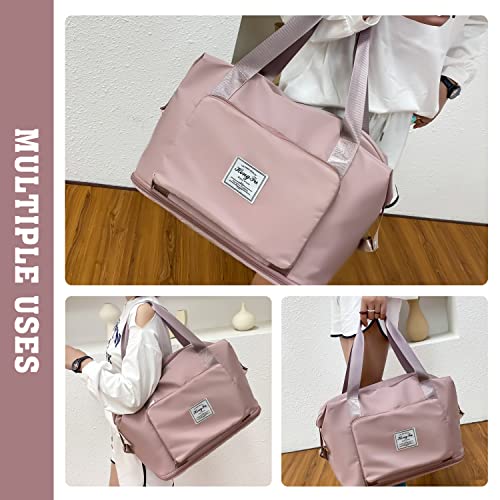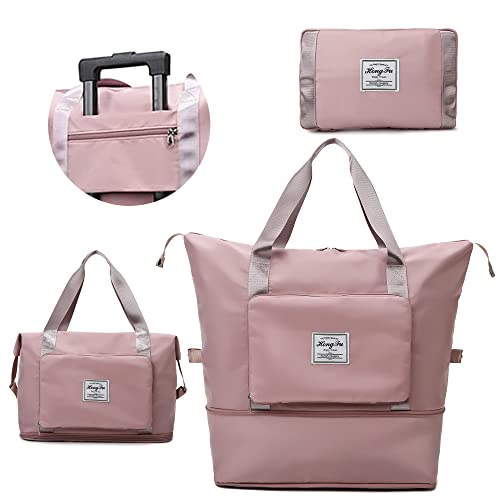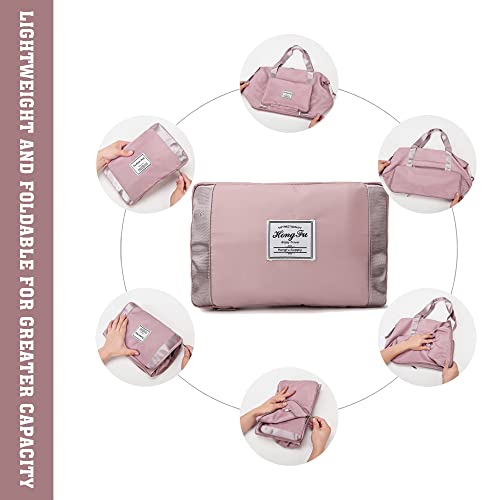 HANGMAI - شنطة دفل للسفر للرجال والنساء يد كبيرة توت للجيم بسعة محمولة خفيفة الوزن وقابلة للطي بتصميم مضاد للماء مع جيب للاغراض المبللة زهري نايلون
