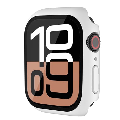 HANKN - شاشة حماية مطفية من البولي كربونات لساعة آبل [2024] سلسلة 10 مقاس 42 ملم، شاشة حماية من الزجاج المقوى بتغطية كاملة مضاد للصدمات لساعة اي ووتش (أبيض، 42 ملم)