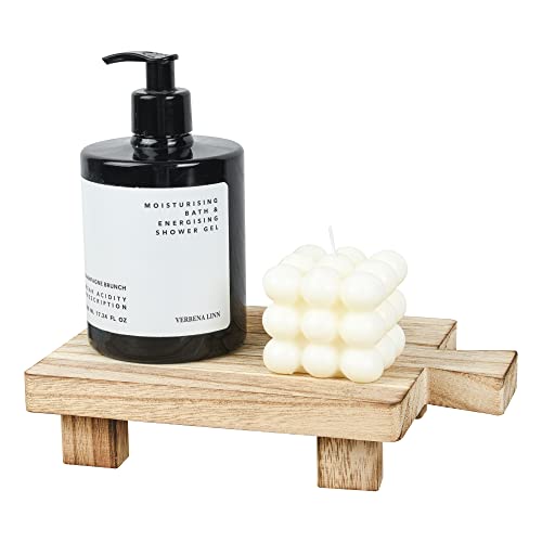 HANKRSSTOP - حامل خشبي بقاعدة خشبية للحمام والمنزل وحوض المطبخ للنباتات صابون لزجاجات المكياج والمناديل والشموع ومناشف الضيوف طبق زينة للمجوهرات والصابون من هانكزستوب مستطيلي