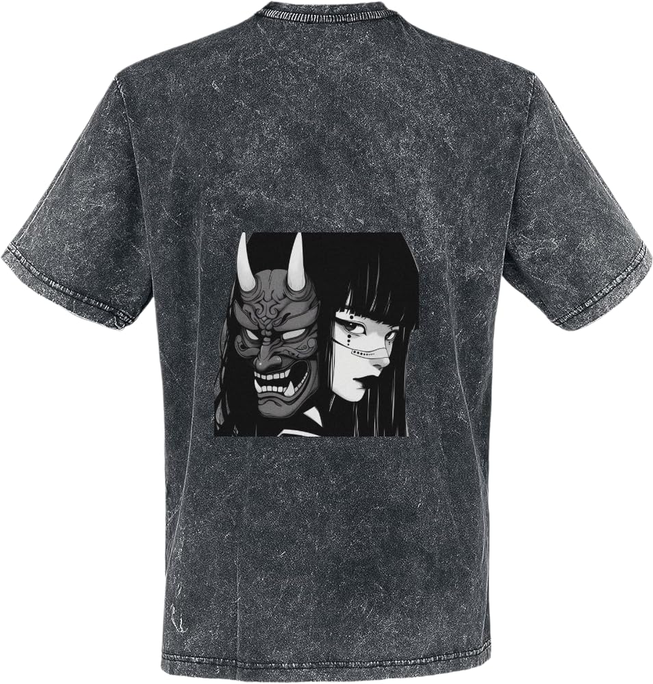 Generic - تي شيرت مطبوع عليه عبارة Hannya Mask Anime Girl من الخلف