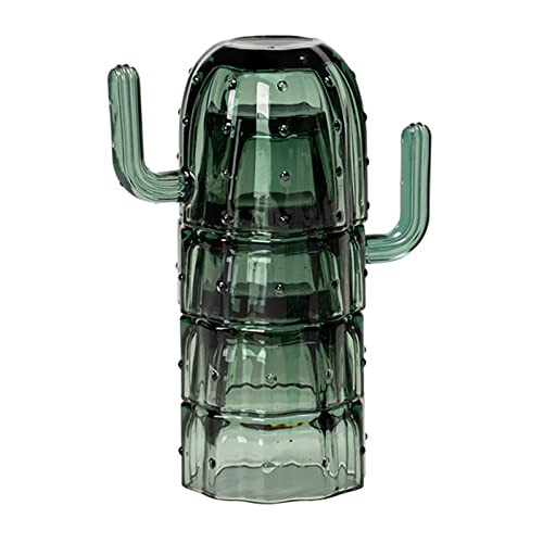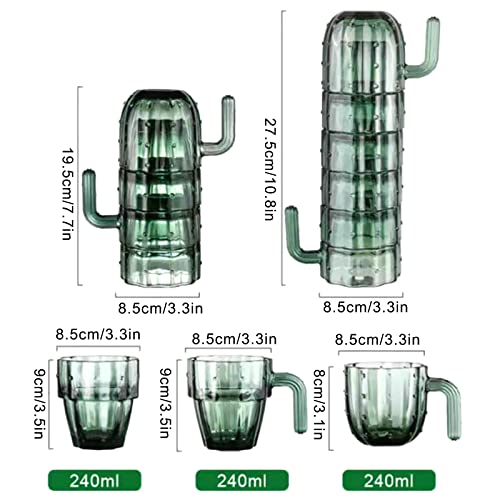 HanOBC - كوب زجاج قابل للتكديس بتصميم صبار مع مقابض من هانوبك، أكواب زجاجية للقهوة، الشاي، الماء، أو العصير، طقم من 4 مجات، 240 ملليلتر