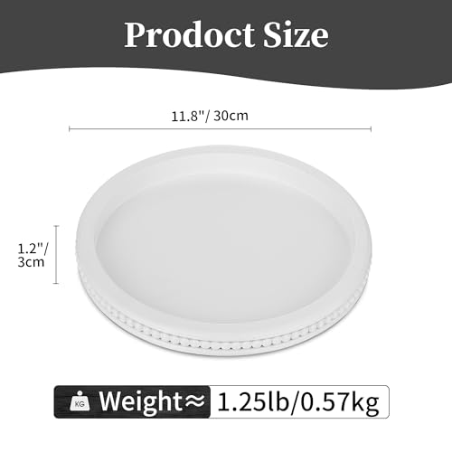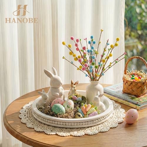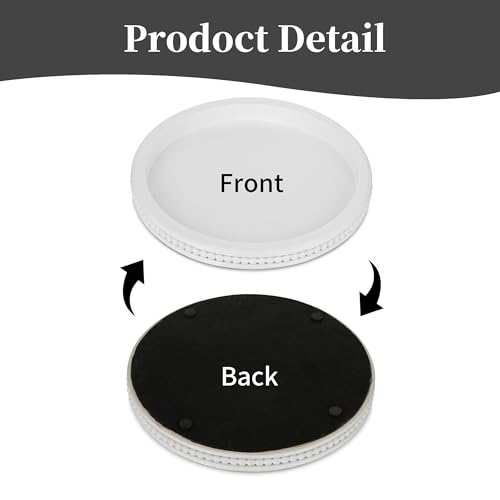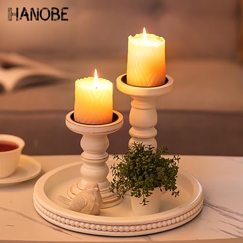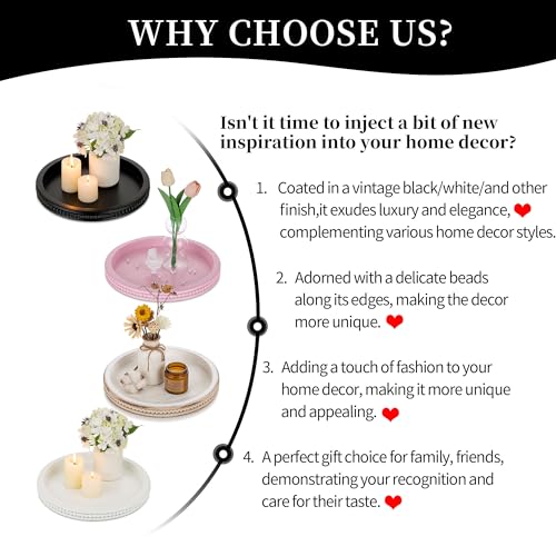 Hanobe - هانوب صينية تقديم خشبية مزخرفة: دائرية من الخرز الابيض لطاولة القهوة صواني ريفية ديكور بيت المزرعة والمطبخ قطعة مركزية عتيقة لغرفة المعيشة وتنظيم المنزل مستدير، بلاستيك