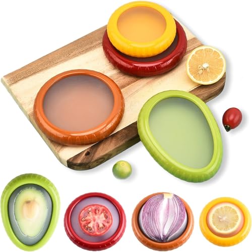 HANR - صندوق تخزين فواكه من السيليكون من هانر، مجموعة حاويات تخزين الفواكه والخضروات من السيليكون لحفظ الفواكه والخضروات في الثلاجة، صندوق تخزين مضاد للأكسدة - 4 قطع