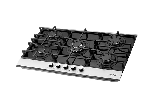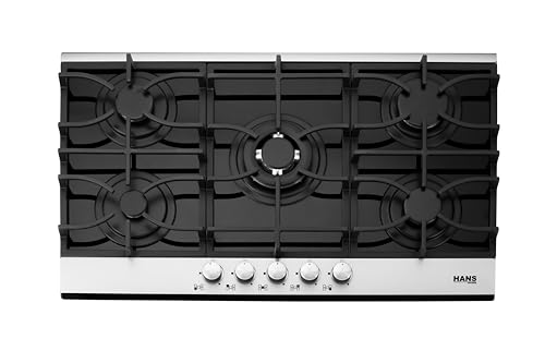 Hans - موقد غاز 9210-19 90 × 60 × 30 سم، 5 شعلات غاز، امان كامل، زجاج اسود، هانز 9210-19