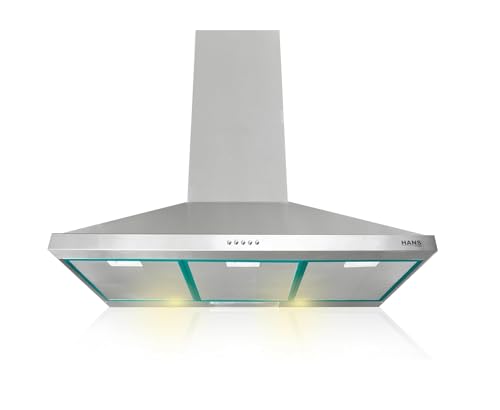 Generic - شفاط مطبخ يثبت على الحائط من هانز 90 سم، سعة 1000 متر مكعب/ساعة، 3 سرعات، هرمي من الستانلس ستيل، تحكم ميكانيكي