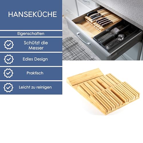 - تخزين عملي ومساحة كبيرة - مع حامل السكاكين من هانسيكوشي ستحصل على خيار تخزين عملي. سكاكين وشفرات المطبخ محمية من خلال التخزين على خشب الأكاسيا وتبقى حادة. بفضل حجمه، يوفر حامل السكاكين أيضًا مساحة كبيرة لسكاكين الطهاة أو سكاكين الخبز أو أدوات المائدة أو المقص.