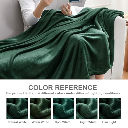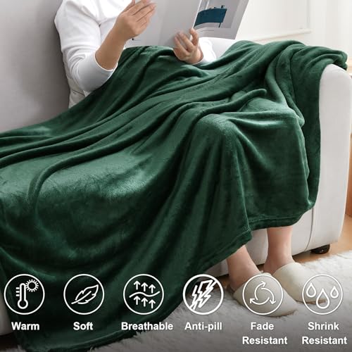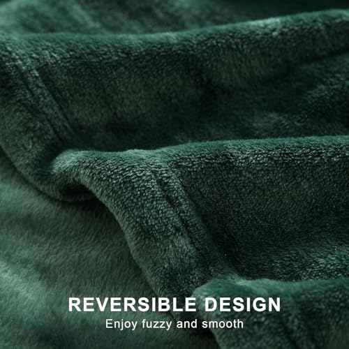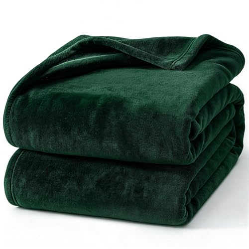 Hansleep - بطانية صوف للسرير من الصوف، بطانية فائقة النعومة من الفلانيل الزغبي، بطانية قطيفة مريحة لجميع الفصول من هانسليب، مقاس كوين، أخضر غامق، 2.29 م × 2.29 م