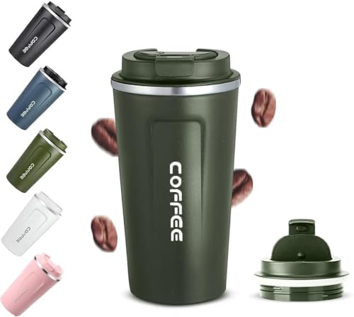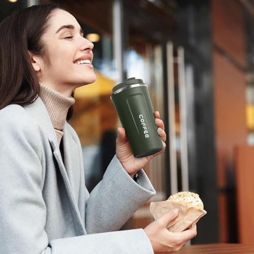 Spaceshoop - كوب قهوة ستانلس ستيل مفرغ من الهواء من هانسو، يحافظ على المشروبات الساخنة والباردة، كوب قهوة حراري مزدوج الجدار خالٍ من BPA ومضاد للانزلاق والتسريب، 500 مل (أخضر)