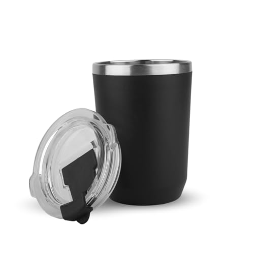 Hanso 1 - كوب قهوة حراري من الفولاذ المقاوم للصدأ مفرغ من الهواء، يحافظ على المشروبات الساخنة والباردة، مزدوج الجدار، خالي من مادة البيسفينول أ ومضاد للانزلاق والتسريب، من هانسو، 350 مل، أسود