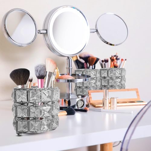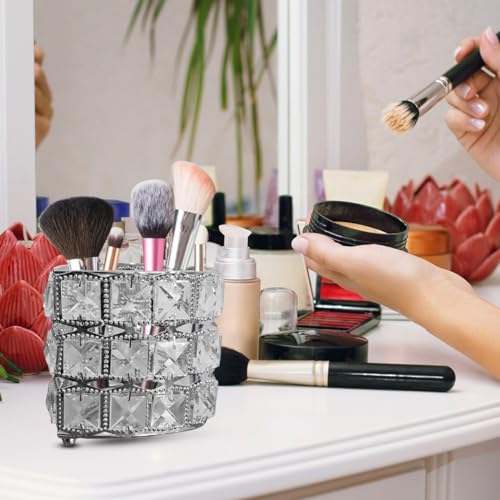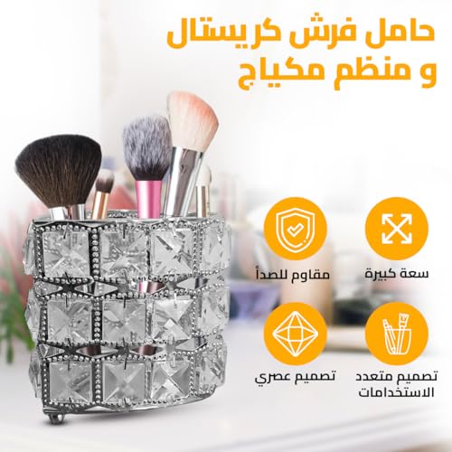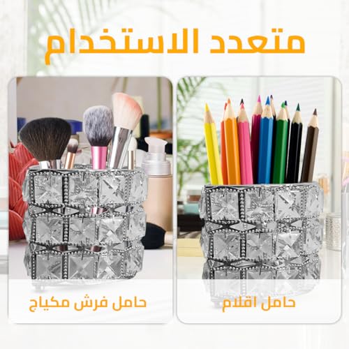 - رؤية واضحة: تسمح لك مادة الكريستال الشفافة برؤية الفرش أو الملحقات والوصول إليها بسهولة، مما يساعدك في الحفاظ على تنظيمك وكفاءتك أثناء روتين التجميل أو مهام العمل.