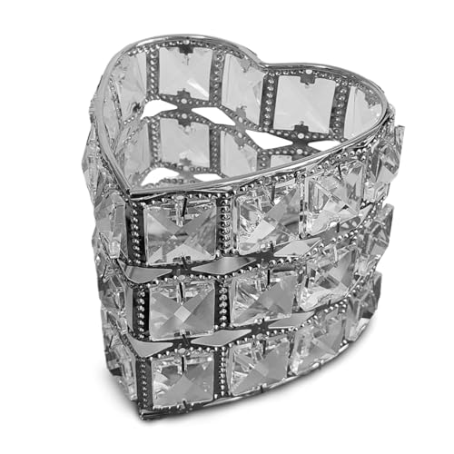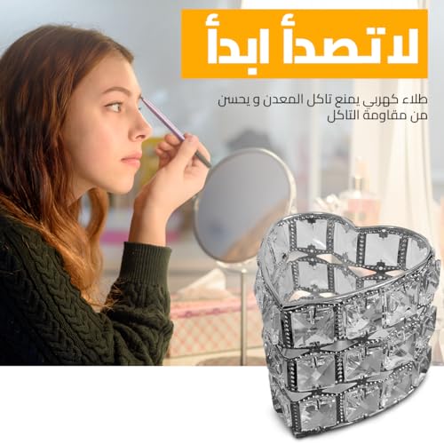 - تصميم أنيق: يتميز حامل فرش المكياج الكريستال هذا بتصميم على شكل قلب بلمسة نهائية بلون فضي مذهل، مما يضيف لمسة من الفخامة والرقي إلى طاولة الزينة أو مكان العمل.