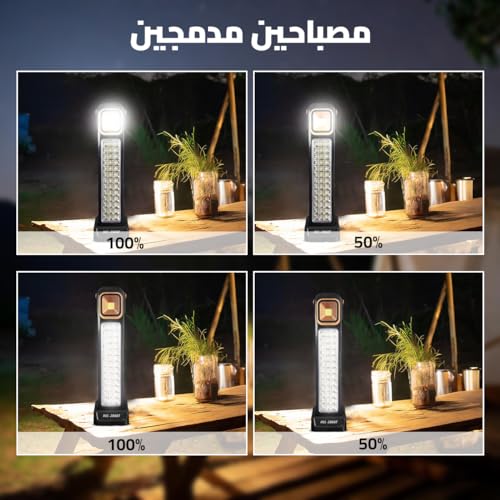 - يدوم طويلاً ومريح في الاستخدام: بفضل سعة بطارية 2400 مللي أمبير في الساعة، توقع ساعات طويلة من الإضاءة مع سهولة تفكيك القاعدة حسب الحاجة للتركيب أو الصيانة.