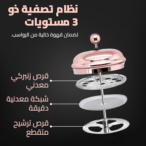 - سهل الاستخدام والتنظيف: أصبح تخمير القهوة أسهل من أي وقت مضى. ما عليك سوى إضافة بن مطحون وماء ساخن والنقع والضغط عليه. الفلتر القابل للفصل يجعل التنظيف سهلاً، مما يوفر لك الوقت والجهد.