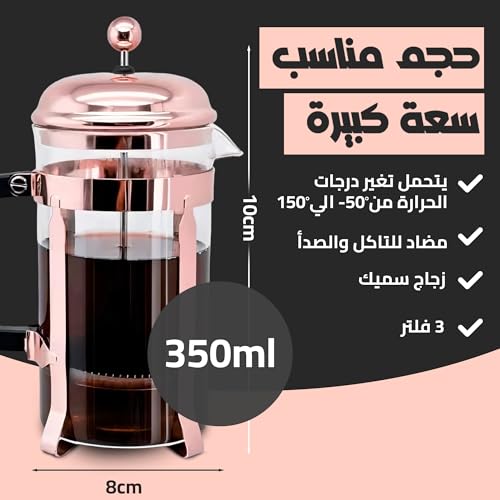 Generic - مكبس تحضير القهوة الفرنسية فرينش بريس من هانسو لتحضير الشاي والقهوة بتصميم صغير الحجم ومقاوم للحرارة مناسبة للمنزل أو المكتب السفر لون ذهبي DV-145 سعة 350 مل
