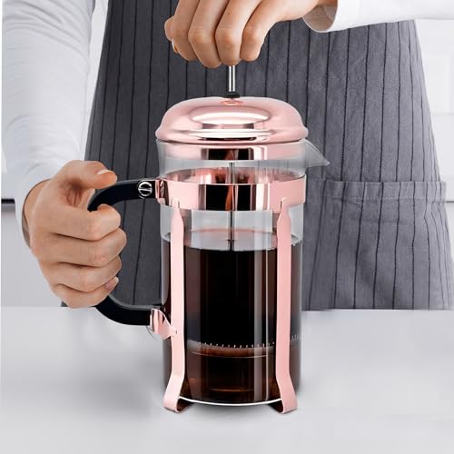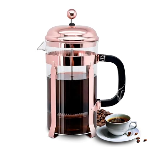 - متين ومقاوم للحرارة: صنع مكبس تحضير القهوة الفرنسية فرينش بريس الخاص بنا من مواد فاخرة، ومصمم لتحمل الاستخدام اليومي. يضمن زجاج بوروسيليكات المقاوم للحرارة والإطار القوي المصنوع من فولاذ مقاوم للصدأ متانة تدوم طويلاً.