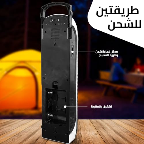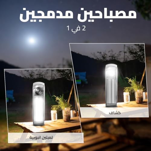- محمول ومريح: التصميم المدمج وخفيف الوزن يجعل من السهل حمله في أي مكان، سواء كنت تخيم أو تتنزه أو تحتاج ببساطة إلى إضاءة طارئة في المنزل أثناء انقطاع التيار الكهربائي غير المتوقع.