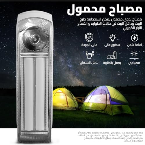 - إضاءة طوارئ متعددة الاستخدامات: مصباح LED القابل لإعادة الشحن الخاص بنا ضروري للعديد من الأعمال المنزلية والأنشطة الخارجية مثل التخييم، مما يوفر إضاءة موثوقة أثناء انقطاع التيار الكهربائي أو المغامرات الخارجية.