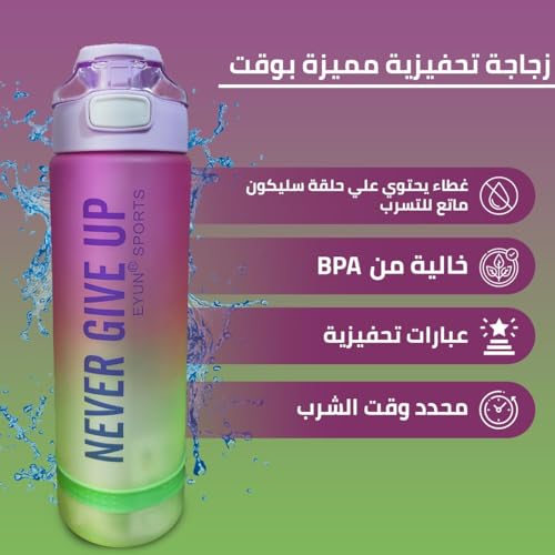 - زجاجة مياه مطبوعة بعبارات تحفيزية مع مؤشر للوقت: تتميز هذه الزجاجة للأولاد بعبارات ملهمة ومميزة وعلامات زمنية كتذكير رائع للحفاظ على رطوبة جسمك وشرب كمية كافية من الماء طوال اليوم. استخدامها مثالي للتحكم في الجوع وإعادة الترطيب بعد التمرين والصحة العامة.