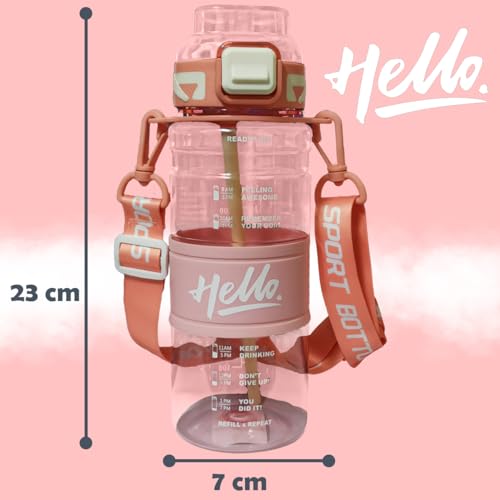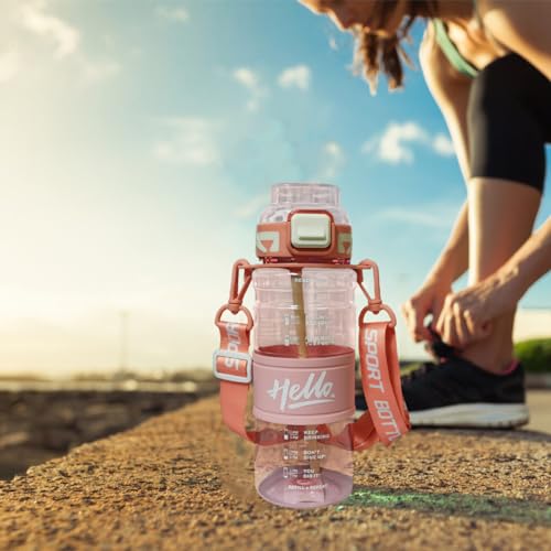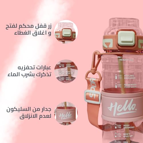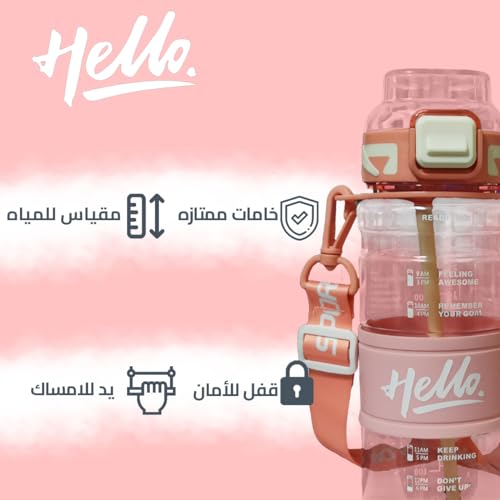 - سهلة الحمل ومريحة: يُسهل الشريط المدمج حملها، مما يضمن حصولك على الترطيب المثالي أينما ذهبت. سواءً كنت متجهًا إلى الجيم أو ذاهبًا في نزهة أو للقيام ببعض المهام، فستكون هذه الزجاجة رفيقك المثالي.