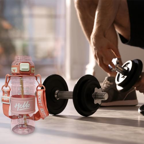 hanso - زجاجة مياه رياضية مانعة للتسرب مع شفاطة محمولة بتصميم عصري ومتين مناسبة لصالة الألعاب الرياضية واللياقة البدنية شريط للحمل وخالية من مادة بيسفينول أ هانسو سعة 720 مل لون وردي بلاستيك