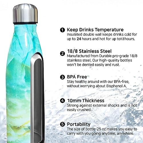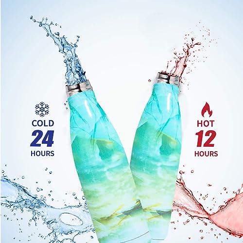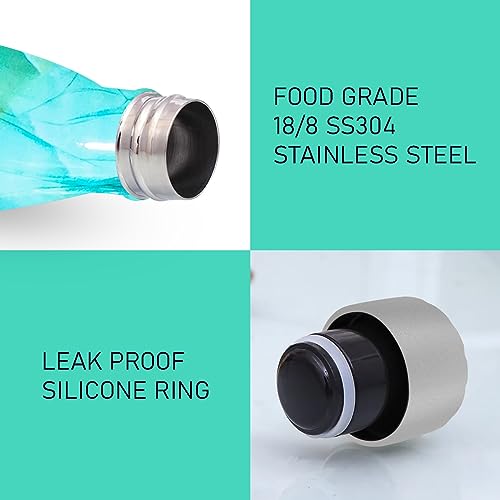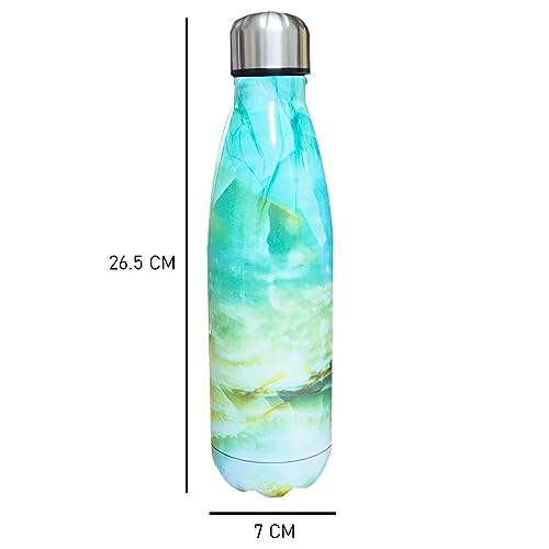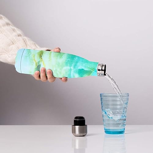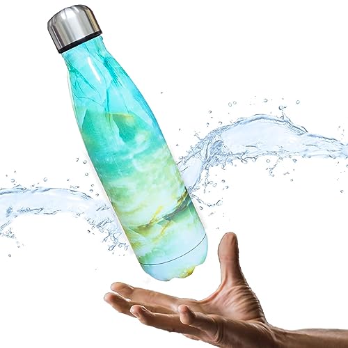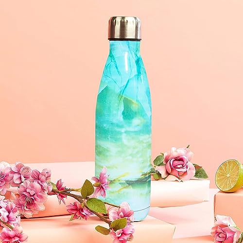 Hanso - زجاجة مياه ساخنة وباردة ستانلس ستيل من هانسو - امنة غذائيا 18 - 8 معزولة بتفريغ الهواء بجدار مزدوج خالية مادة BPA صحية وسهلة التنظيف انيقة ومناسبة للسفر 500 مل رخامي ازرق سيان
