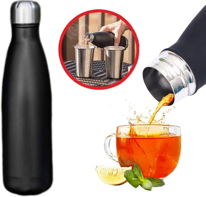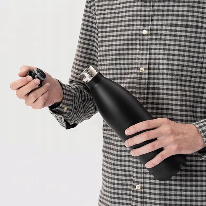 Generic - زجاجة مياه ستانلس ستيل معزولة بتفريغ الهواء من هانسو رياضية مزدوجة الجدار مانعة للتسرب ساخنة وباردة خالية مادة بيسفينول أ 600 ملليلتر اسود