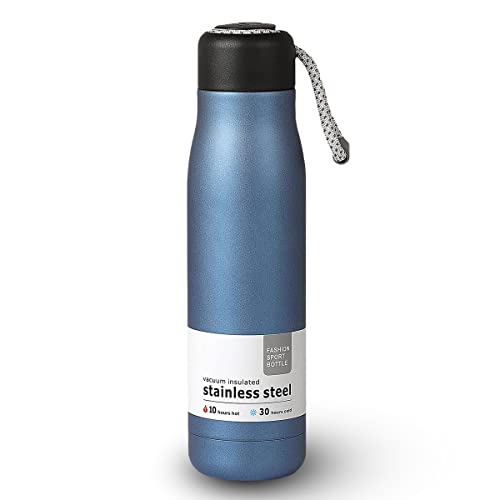 Spaceshoop - زجاجة مياه فولاذ مقاوم للصدأ رياضية معدن قابلة لإعادة الاستخدام تبقي المشروبات ساخنة وباردة ومعزولة بالتفريغ وبجدار مزدوج وخالية من مادة بيسفينول أ للتخييم والجيم من هانسو، 500 مل (أزرق)