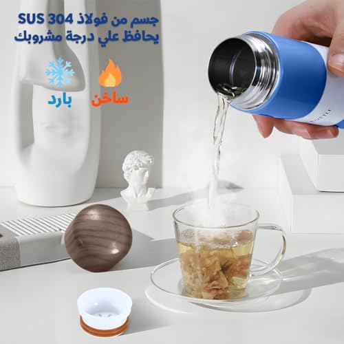 - التوافق مع الطبيعة، غلاف أنيق بنقشة الخشب يحول كوب الترمس إلى إكسسوار عصري؛ سيعتقد أصدقاؤك أنها قطعة مصمّمة على طراز فاخر، وأنت فقط تعلم أنه مصنوع من صلب 304 القوي في الداخل.