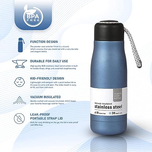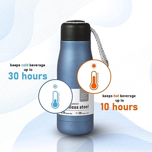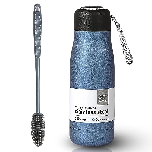 Generic - زجاجة مياه رياضية معزولة بتفريغ الهواء من هانسو مزدوجة الجدار مانعة للتسريب وخالية مادة بيسفينول ا بفوهة واسعة ومقبض لون ازرق 400 مل مع فرشاة سيليكون هدية