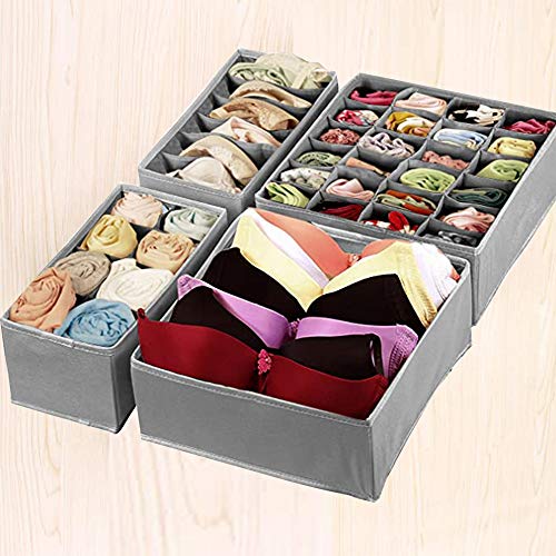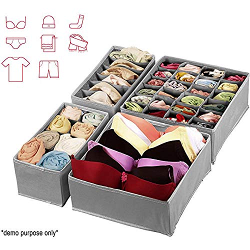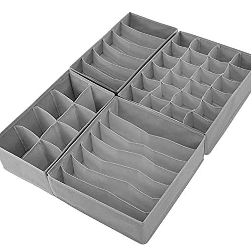 HANWEI - منظم ملابس داخلية للدواليب والأدراج وفواصل الأدراج مجموعة من فواصل صندوق تخزين قماش قابل للطي رمادي 4 قطع