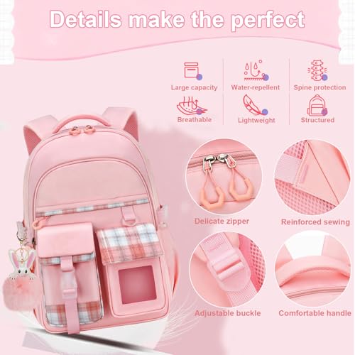 HANXIUCAO - شنطة ظهر مدرسية بسعة كبيرة للبنات مقاومة للماء مع جيب للاب توب، شنطة ظهر للبنات للمرحلة من الابتدائية حتى الجامعة من هانكسيكاو