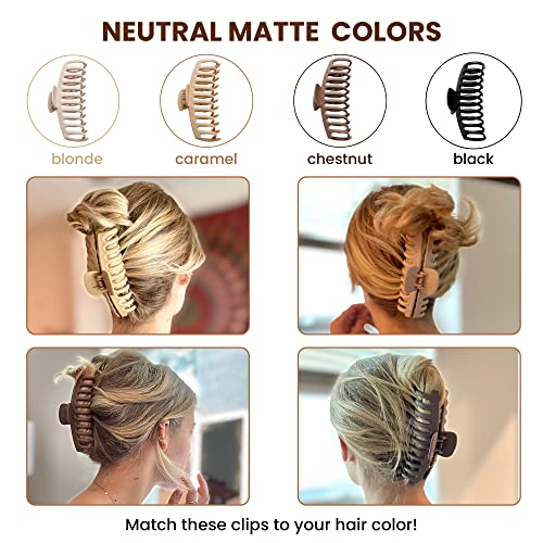 Generic - مشابك مخلبية كبيرة جدا بمقاس 5.5 بوصة للشعر الكثيف - تثبيت قوي، مشابك شعر جامبو كبيرة غير لامعة للشعر الطويل - مجموعة من 4 قطع