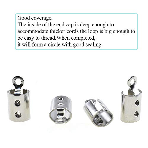 HAO PRO - أغطية أطراف حبال قابلة للطي 11.7×5.7 ملم، مشبك تثبيت من الفولاذ المقاوم للصدأ، حلقة توصيل كبيرة بما يكفي وعميقة لتثبيت الحبال السميكة بإحكام، تغطية جيدة للسلاسل والشريط الجلد من هاو برو، فضي 120 قطعة